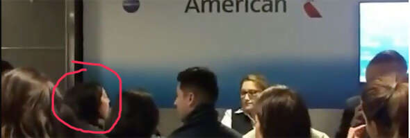 Passengers surrounded a gate agent at New York’s LaGuardia Airport apparently wanting information as to when their flight to Miami (which had been delayed by bad weather) would depart.