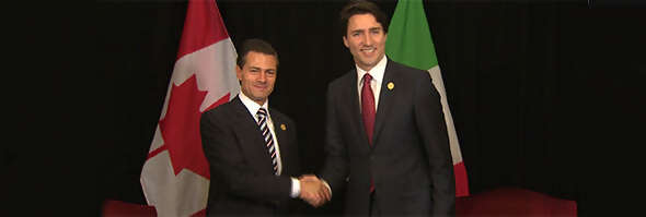 Pena Nieto was on Day 2 of a three-day visit to Canada, which culminates in the North American Leaders' Summit, taking place Wednesday at Ottawa's National Gallery of Canada with Trudeau and US President Barack Obama.