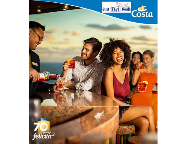 Additional friends and family in your stateroom receive Classic Non-alcoholic Beverage Packages and 40-minute Internet Packages.