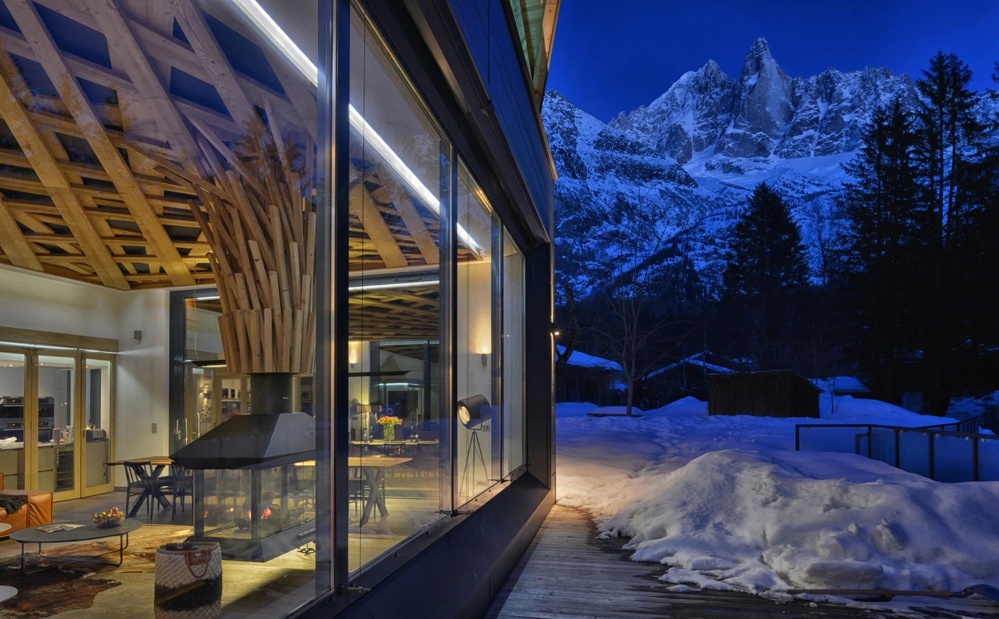 The luxurious Chalet Shergan sleeps up to ten guests in five stunning bedrooms, all with en-suite bathrooms. The chalet provides a modern variation to traditional alpine architecture with its large panoramic windows surrounding the vast living spaces and an open roof terrace offering the most gorgeous views of Mont Blanc.