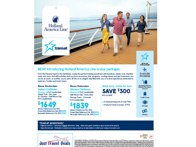 Early Booking Bonuses with Holland America Line