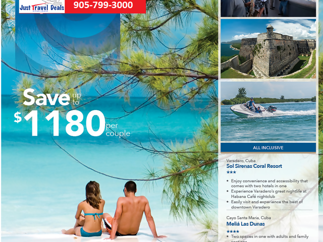 Reservations Call JustTravelDeals @ 905-799-3000 or info@justtraveldeals.ca