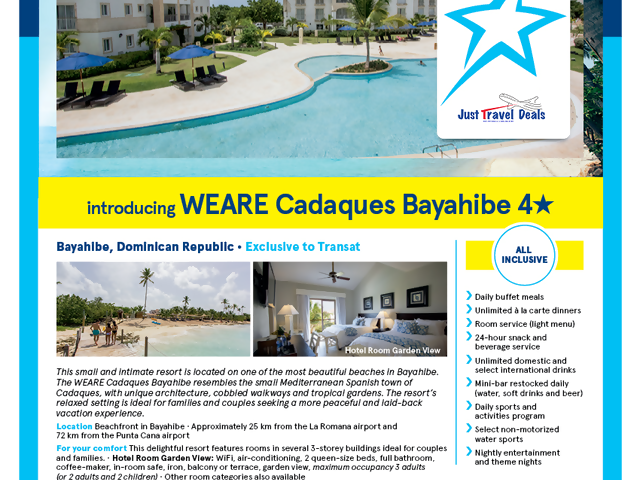 The resort is available in Canada exclusively through Signature Vacations with packages from Toronto, Montreal and Quebec City. This summer, packages will be available from Vancouver with twice weekly service (via Toronto) and in the winter travellers can choose from 19 gateways across Canada, including daily service from Toronto and Montreal.