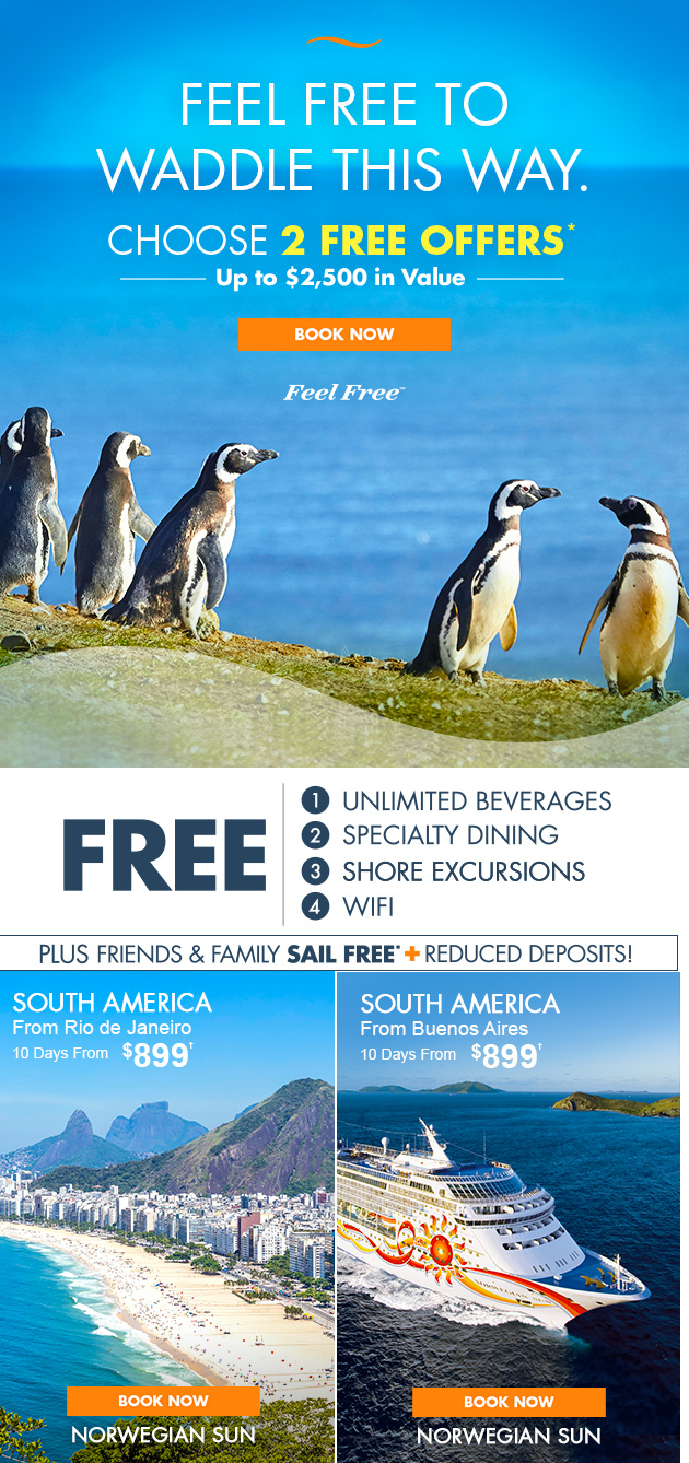 Norwegian Cruise Line Choose 2 Free Offers When You Book A Balcony or Mini-Suite.