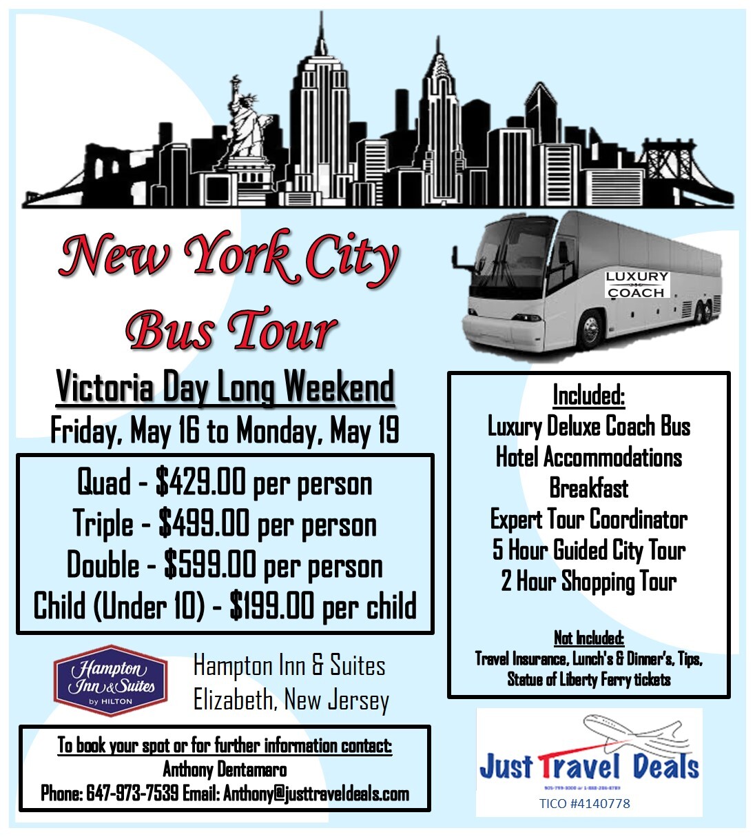 Reservations Call JustTravelDeals @ 905-799-3000 or info@justtraveldeals.ca